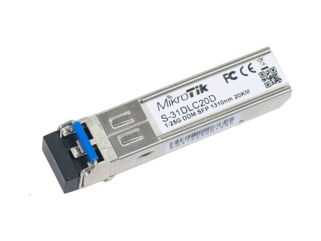 Mikrotik S-31DLC20D je 1.25G vysielač SFP s 1310 nm, dvojitý LC konektor. Je určený pre jednovidové vlákna (SM). do 20 km (s DDM).