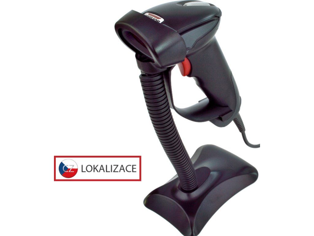 Čierny laserový ručný snímač čiarového kódu umožňujúci automatickú detekciu prítomnosti kódu a dodávaný so stojanom. Konštrukcia sa vyznačuje vysokou spoľahlivosťou a odolnosťou. Je vybavený rozhraním USB, ktoré umožňuje emulovať klávesnicu a sériový port.