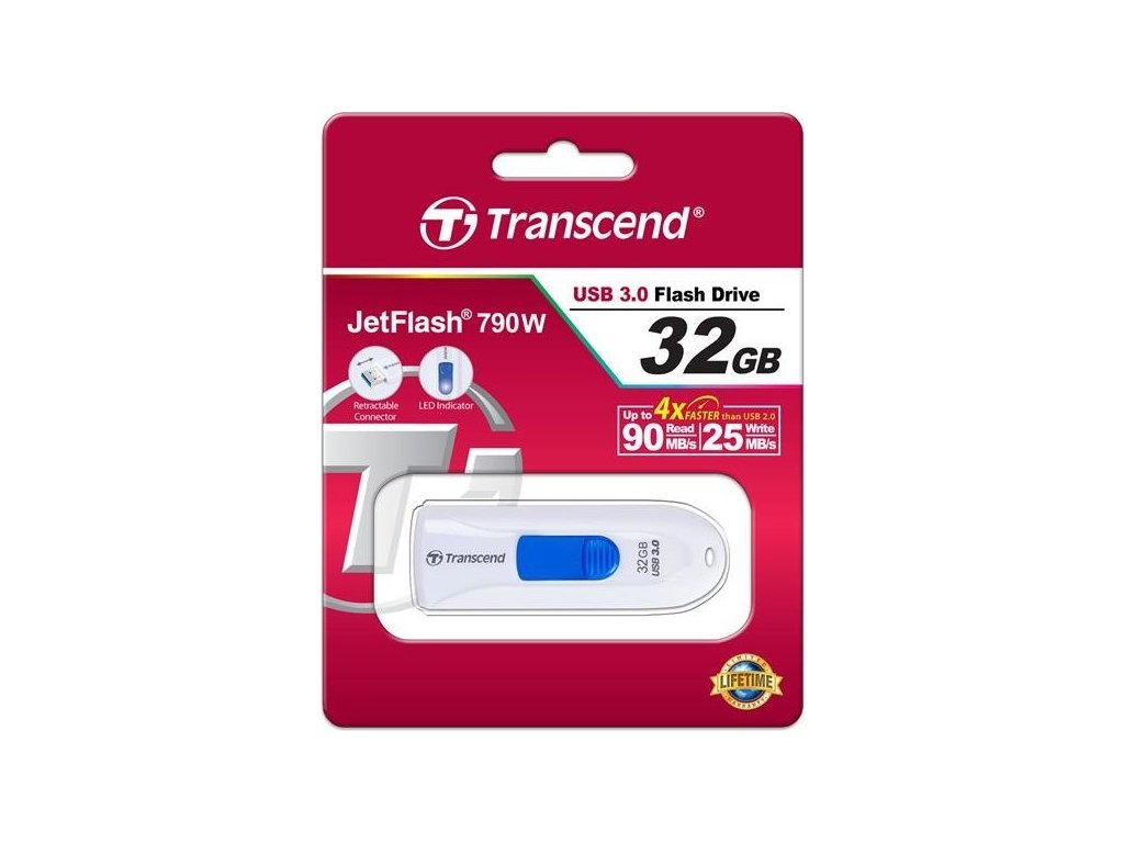 TRANSCEND Flash disk 32GB JetFlash®790, USB 3.1 (R:90/W:25 MB/s) biela/modrá
