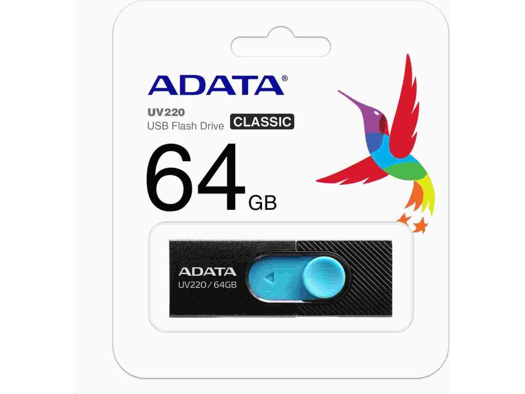ADATA Flash Disk 64GB UV220, USB 2.0 Dash Drive, čierna/modrá