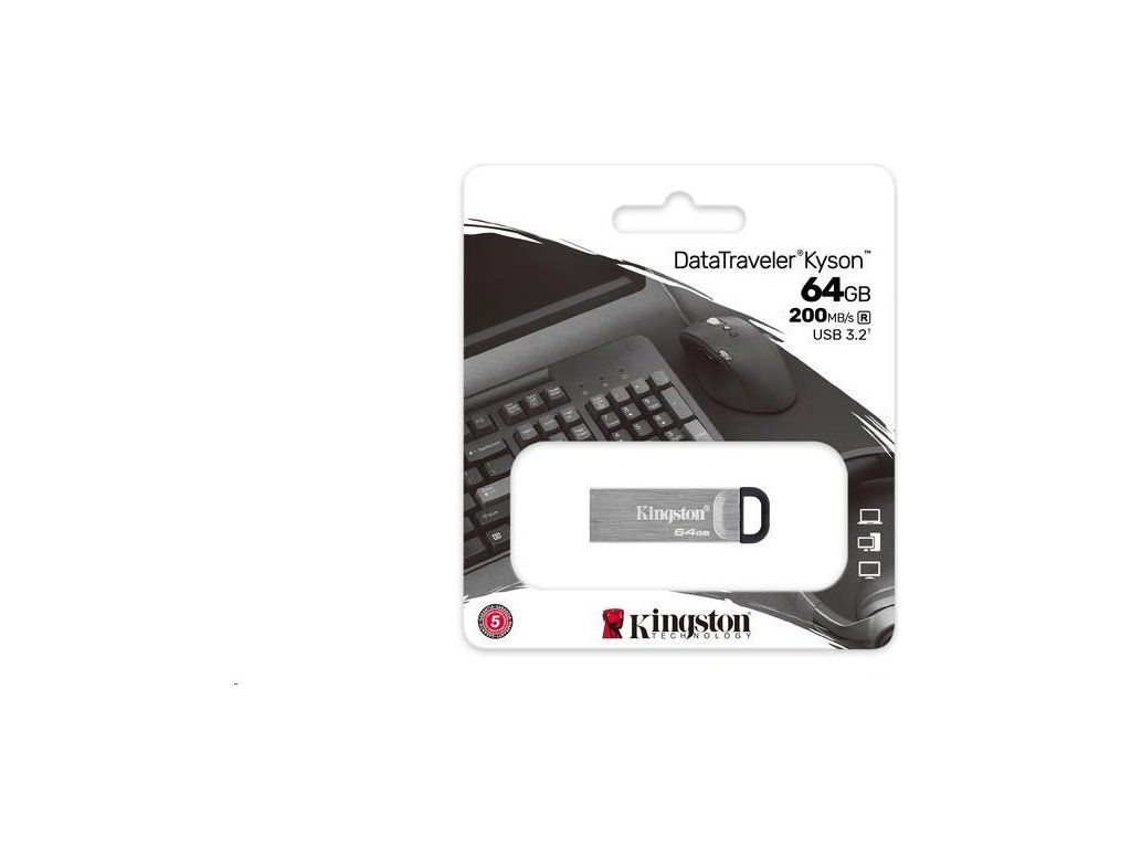 DataTraveler Kyson je štýlový, spoľahlivý USB-A Flash disk, ktorý prichádza s obmedzenou 5-ročnou zárukou.