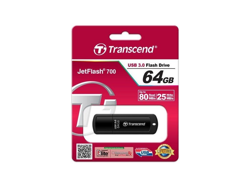 TRANSCEND Flash disk 64GB JetFlash®700, USB 3.0 (R:80/W:25 MB/s) čierna