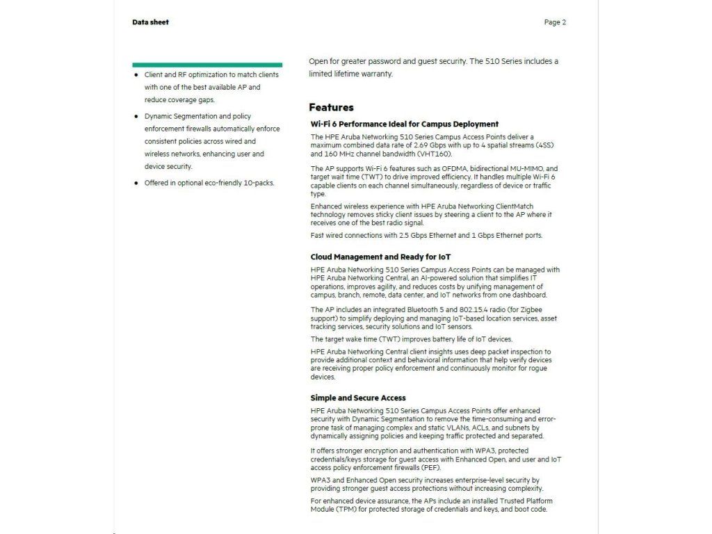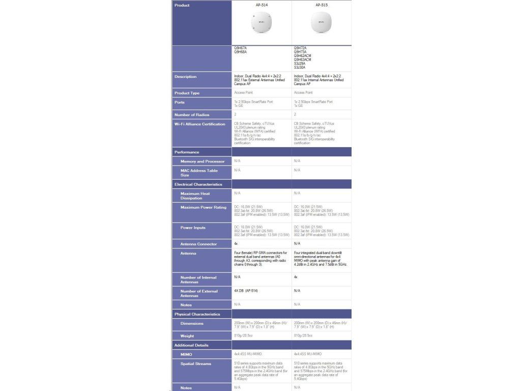 Aruba AP-515 (RW) Dual Radio 4x4:4 + 2x2:2 802.11ax Internal Antennas Unified Campus AP RENEW Q9H62A
