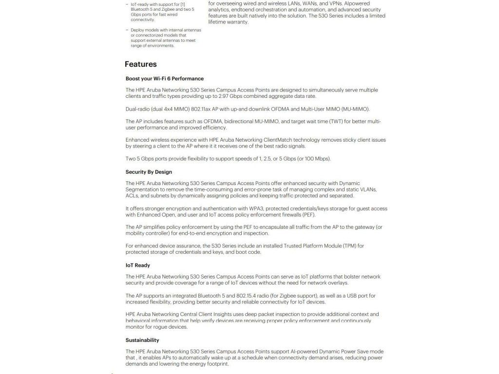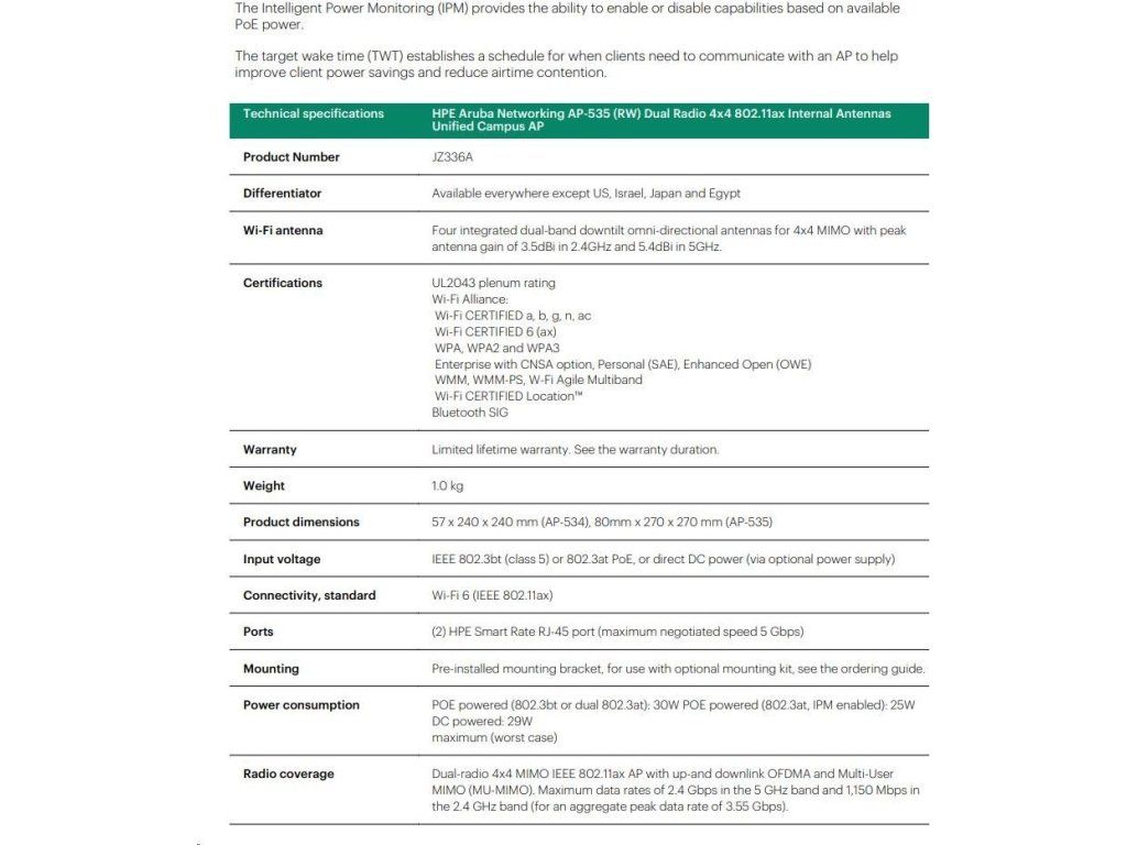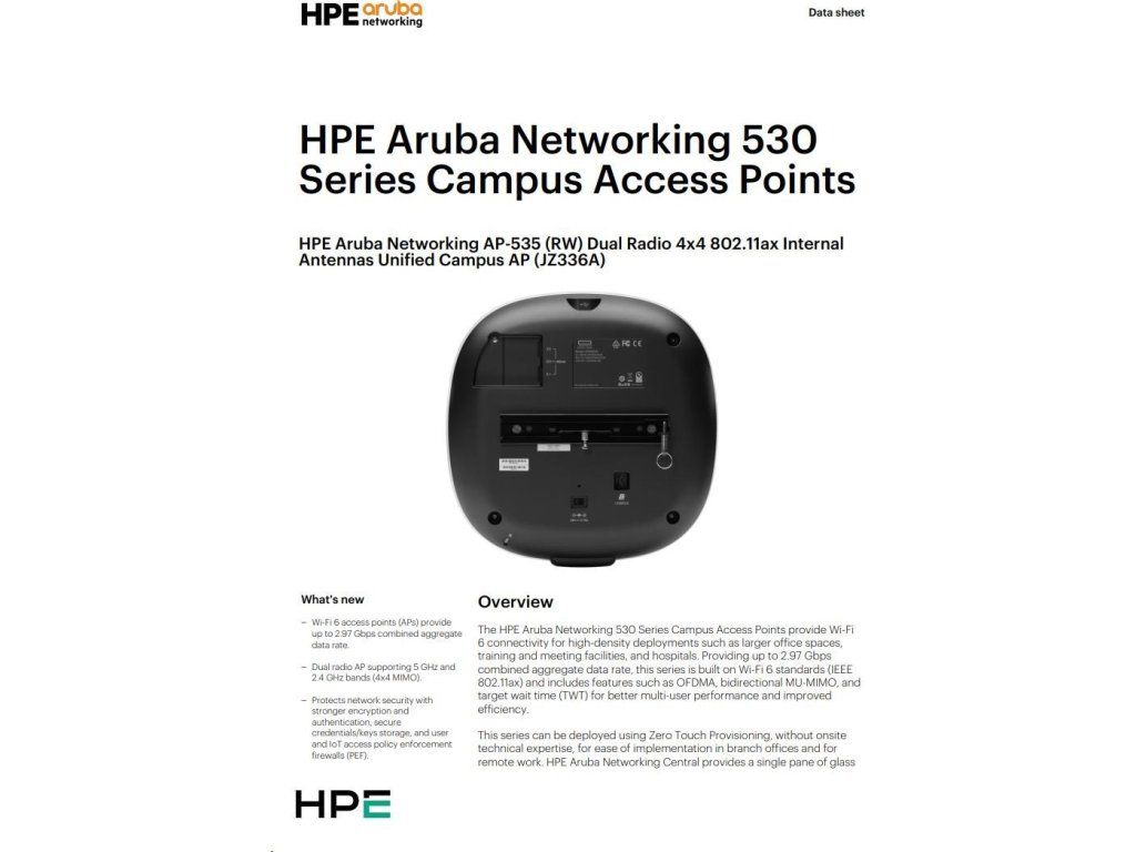 Aruba AP-535 (RW) Dual Radio 4x4:4 802.11ax Internal Antennas Unified Campus AP RENEW JZ336A