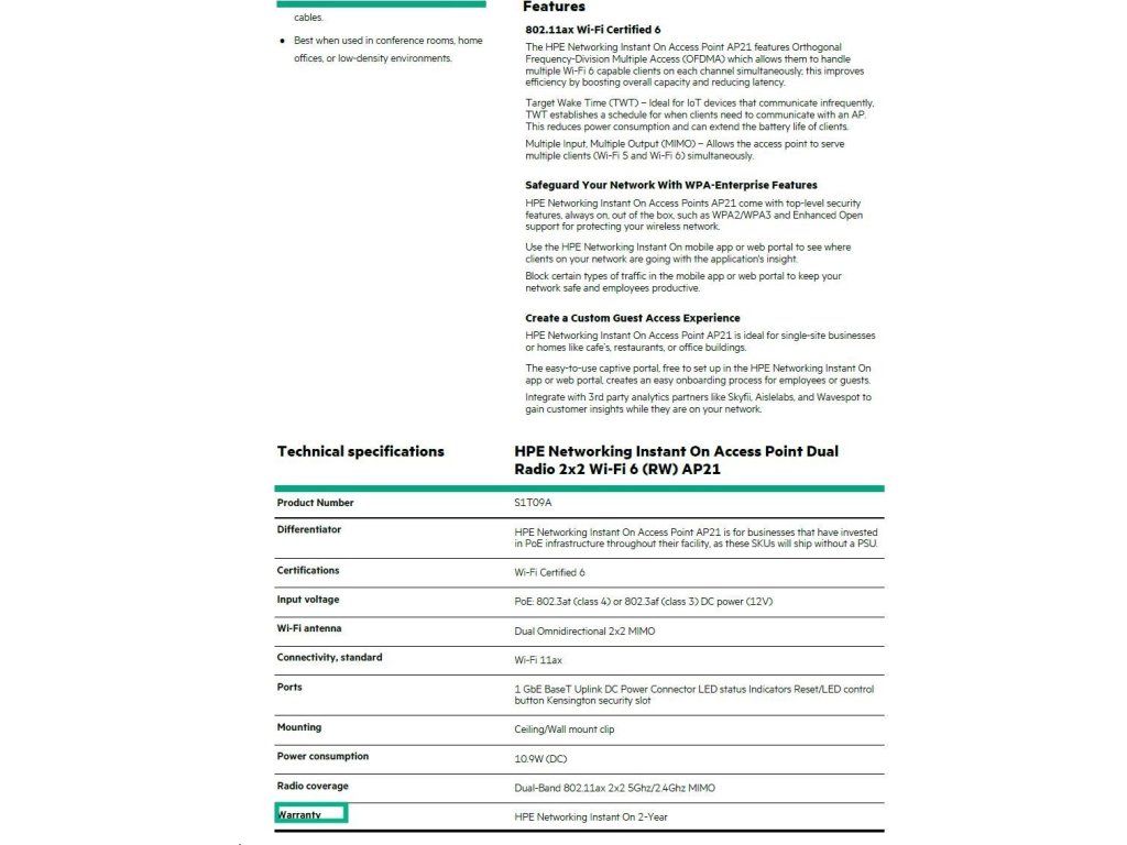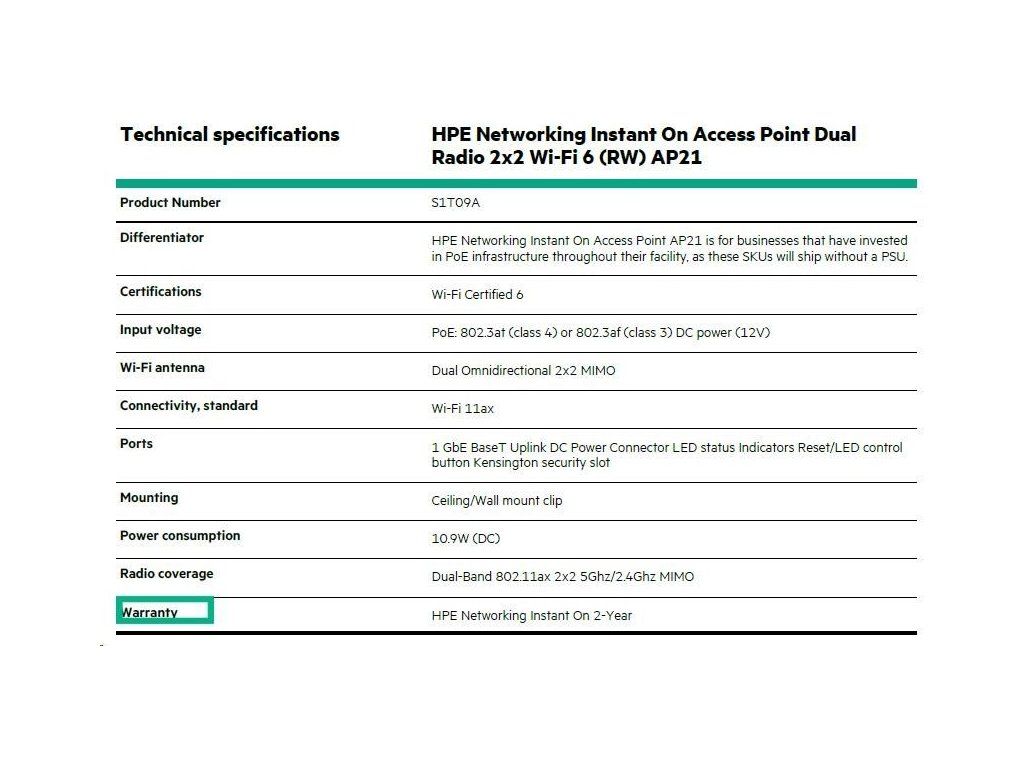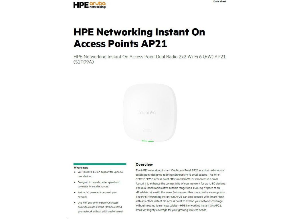 HPE Networking Instant On AP21 (RW) Dual Radio 2x2 Wi-Fi 6 Access Point