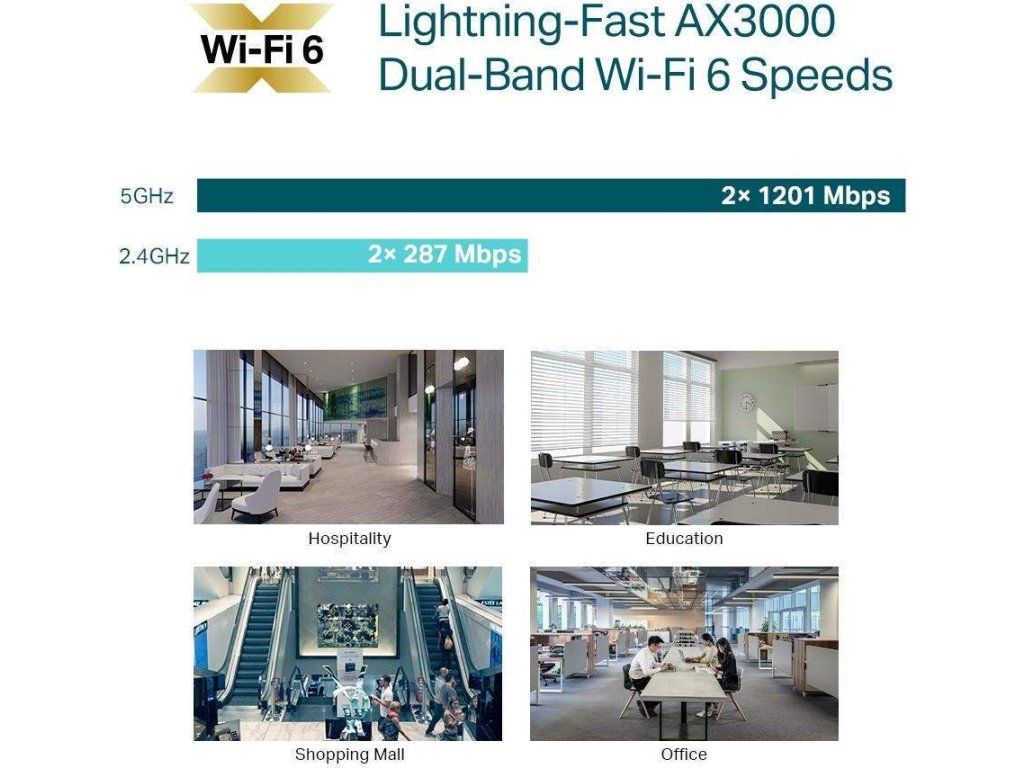2 976 Mbit/s v sieti WiFi. - Vysoko účinná sieť WiFi 6 - väčší počet pripojených zariadení môže využívať vyššie rýchlosti.