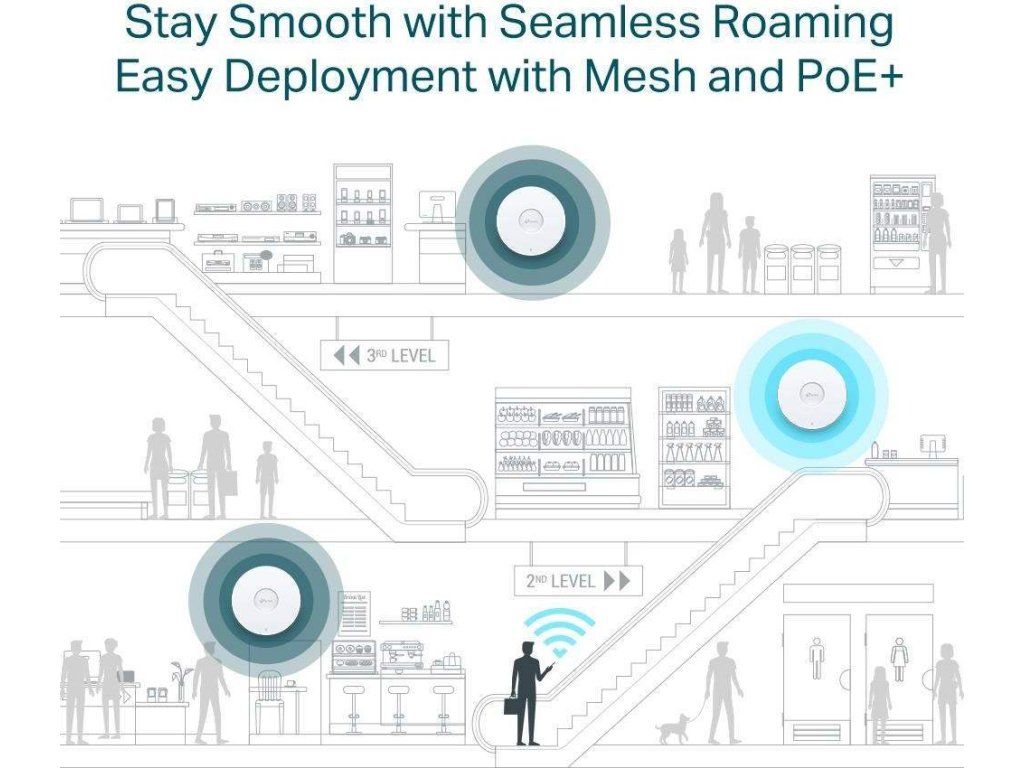 - Plynulé prepínanie medzi pripojenými zariadeniami - používatelia sa môžu voľne pohybovať v pokrytej oblasti, bez vplyvu na streamovanie videa a hlasové hovory.