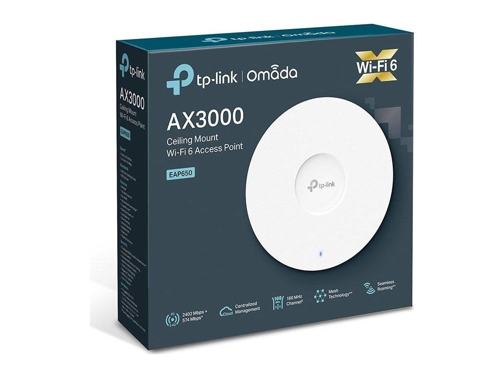 TP-Link EAP650 OMADA WiFi6 AP (AX3000,2,4GHz/5GHz,1xGbELAN,1xPoE-in)