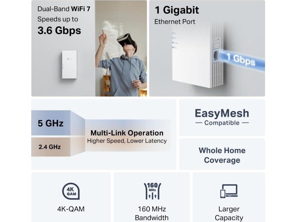 Dvoupásmový Wi-Fi 7 extender BE3600