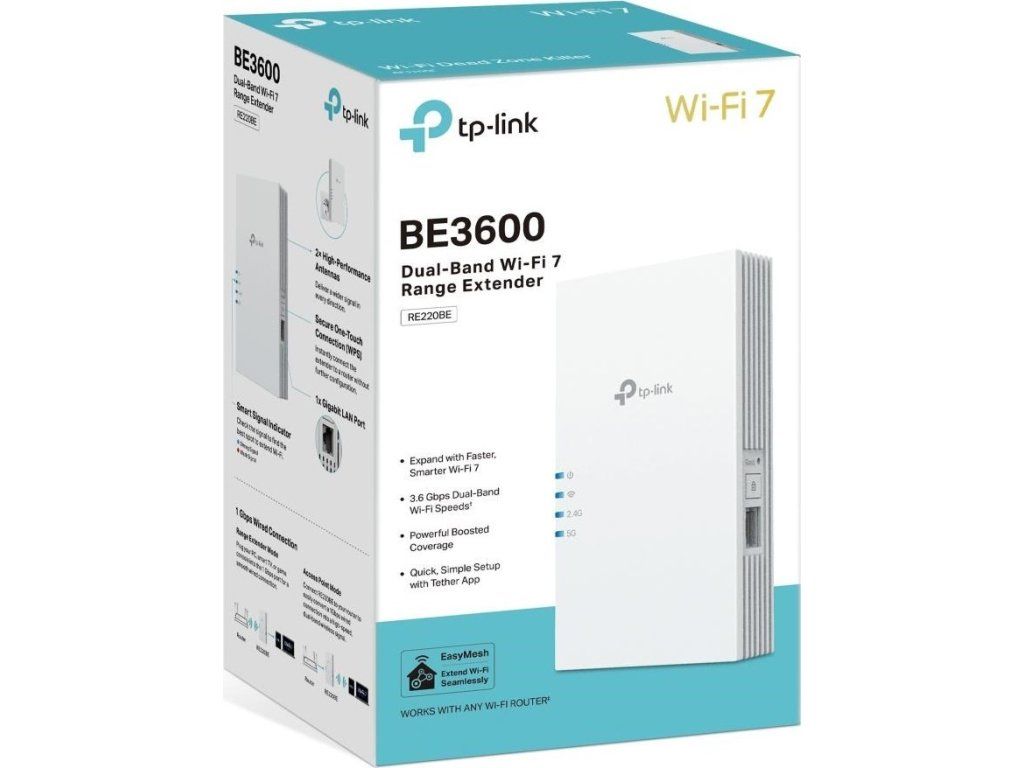 TP-Link RE220BE EasyMesh WiFi7 Extender/Repeater (BE3600,2,4GHz/5GHz,1xGbE)