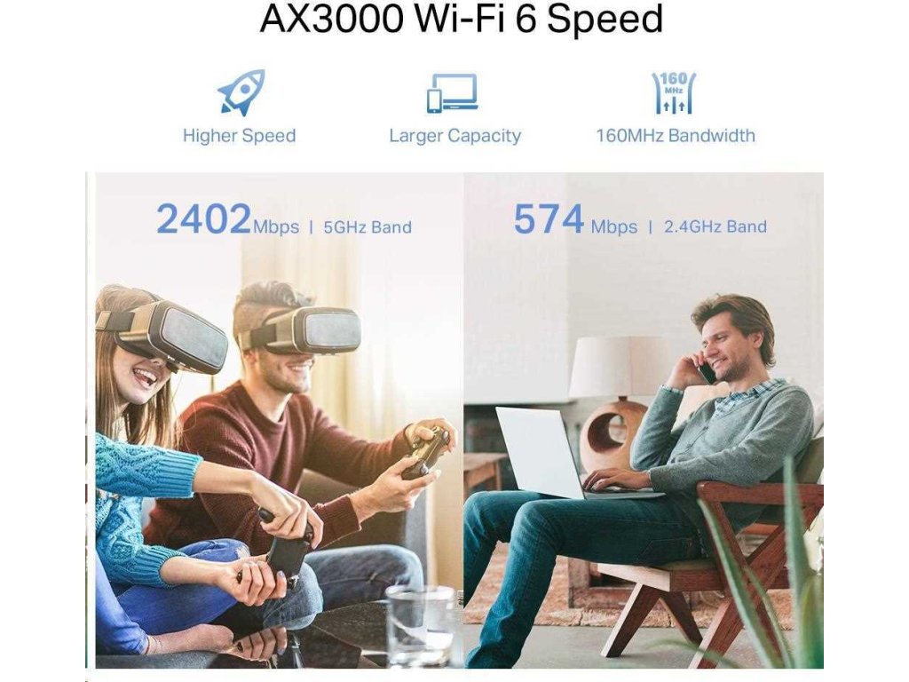 - Dvoupásmová sieť Wi-Fi 6 – oddelené pásma 5 GHz (2 402 Mbit/s) a 2,4 GHz (574 Mbit/s) siete Wi-Fi prinášajú vďaka najnovším technológiám vyššiu rýchlosť a väčšiu priepustnosť.