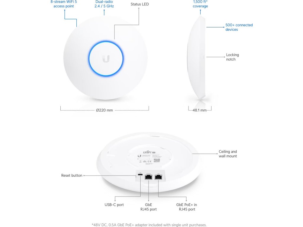 * Len jedno balenie UAP-AC-HD obsahuje adaptér PoE.