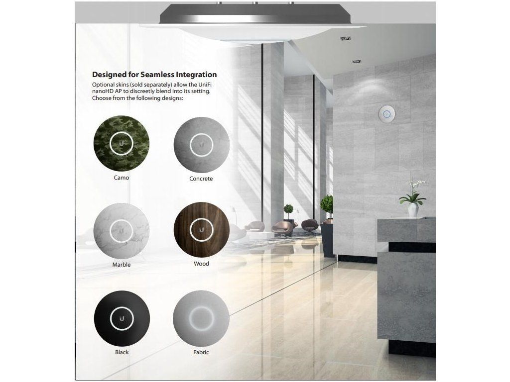 ako prvý z rodiny UniFi bude mať tento model voliteľné šasi, ktoré sa dá dokúpiť, a na výber bude celkovo 6 rôznych dizajnov - mramorový, matný čierny, betónový, drevený, látkový a vojenský maskovací.