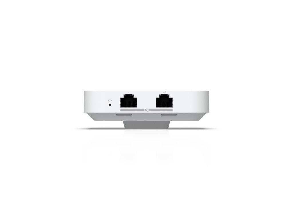 U7-IW je WiFi 7 access point z rodiny UniFi, který je určený k zabudování na krabičku ve zdi. Dual-band WiFi 7 nabízí maximální modulační rychlost až 4,3Gbps v pásmu 5 GHz a až 688Mbps v pásmu 2.4 GHz. Pro připojení k síti má na zadní straně (1) 2.5G ETH port, který slouží i pro napájení jednotky pomocí PoE 802.3af/at či pasivního PoE 42,5 až 57V DC. I po instalaci na krabičku vám zůstanou dostupé (2) 2.5G ETH porty, z nichž jeden podporuje PoE-OUT pro připojení dalšího zařízení. V případě využití PoE-OUT funkce je potřebné jednotku napájet PoE+ 802.3at 30W.