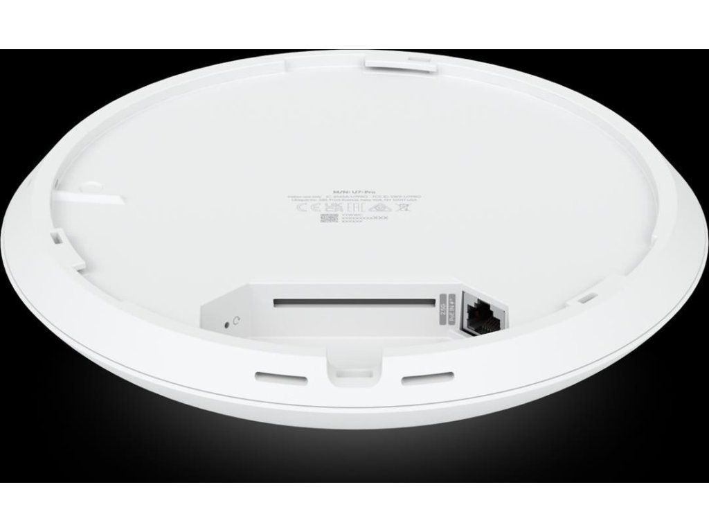 Ubiquiti U7 Pro je nový třípásmový access point. K síti jej připojíte pomocí běžného LAN portu s rychlostí až 2,5 Gb/s. Bezdrátové frekvence jsou 2,4 GHz s rychlostí 688 Mb/s, 5 GHz s rychlostí 2880 Mb/s a 6 GHz pásmo s rychlostí 5760 Mb/s. Access point je napájen pomocí protokolu PoE+ a jeho maximální spotřeba je 21 W. Poskytuje internetové připojení pro více než 300 zařízení najednou.