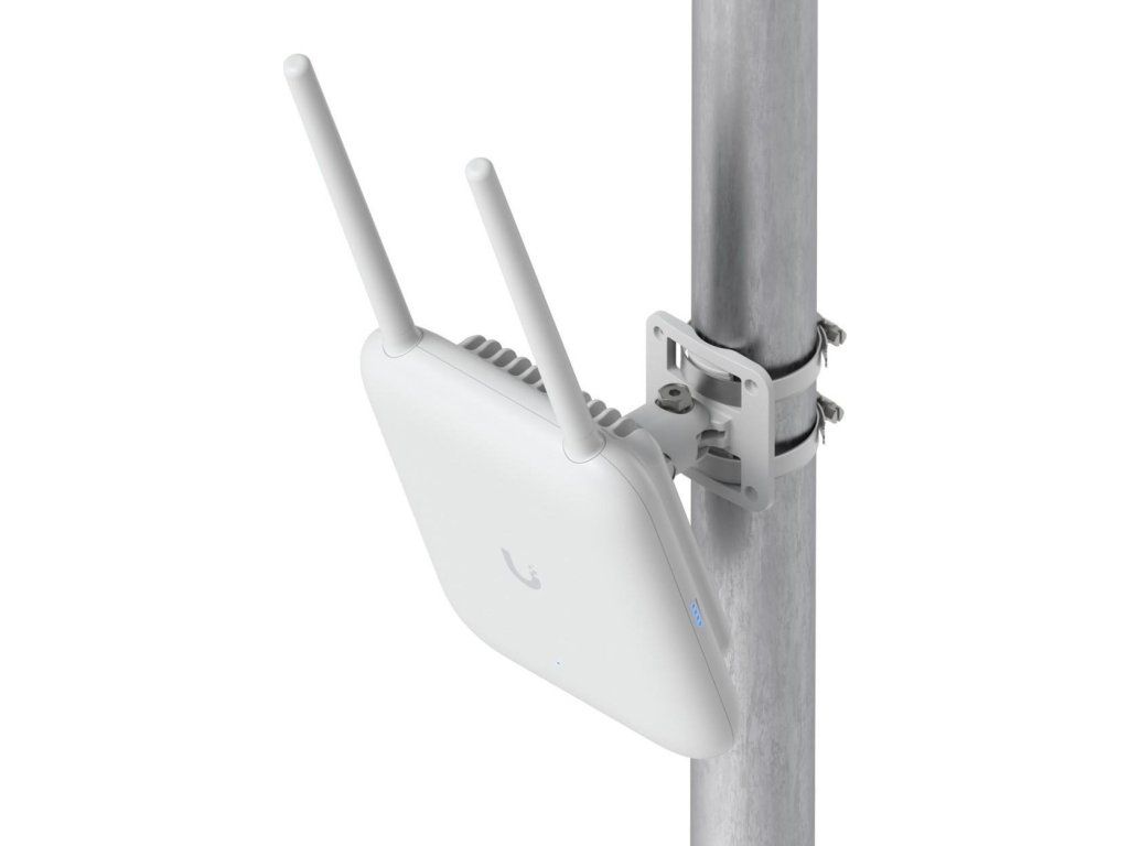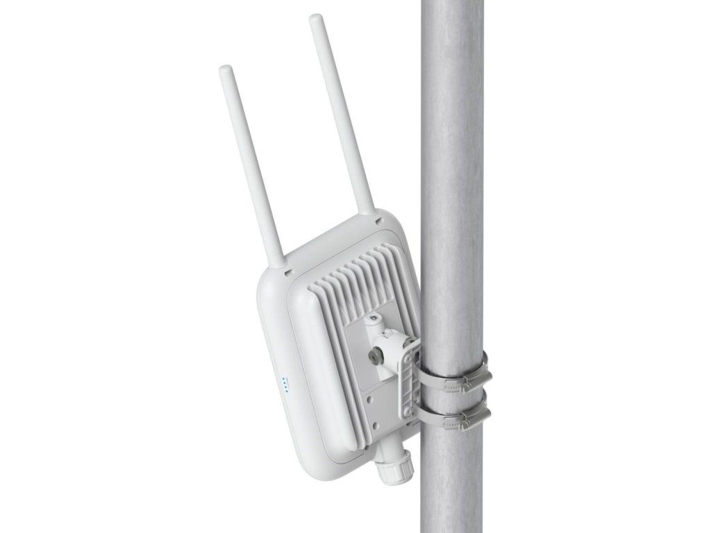 Access point nabízí široké možnosti montáže na stěnu, strop nebo stožár, montážní příslušenství je součástí balení, pro venkovní použití vč. voděodolné kabelové průchodky.
