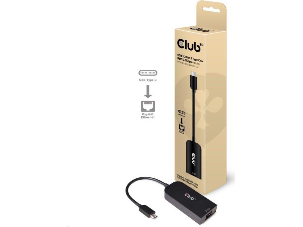 | CLUB-3D USB 3.2 Gen1 typ C na RJ45 2.5Gb Obsahuje inštalačné CD |