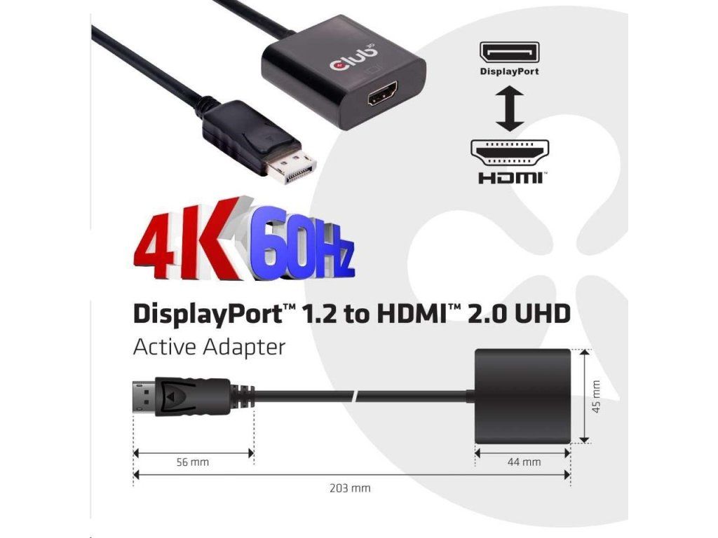 Club-3D DISPLAY PORT 1.2 MALE TO HDMI 2.0 FEMALE 4K 60HZ UHD/ 3D ACTIVE ADAPTER