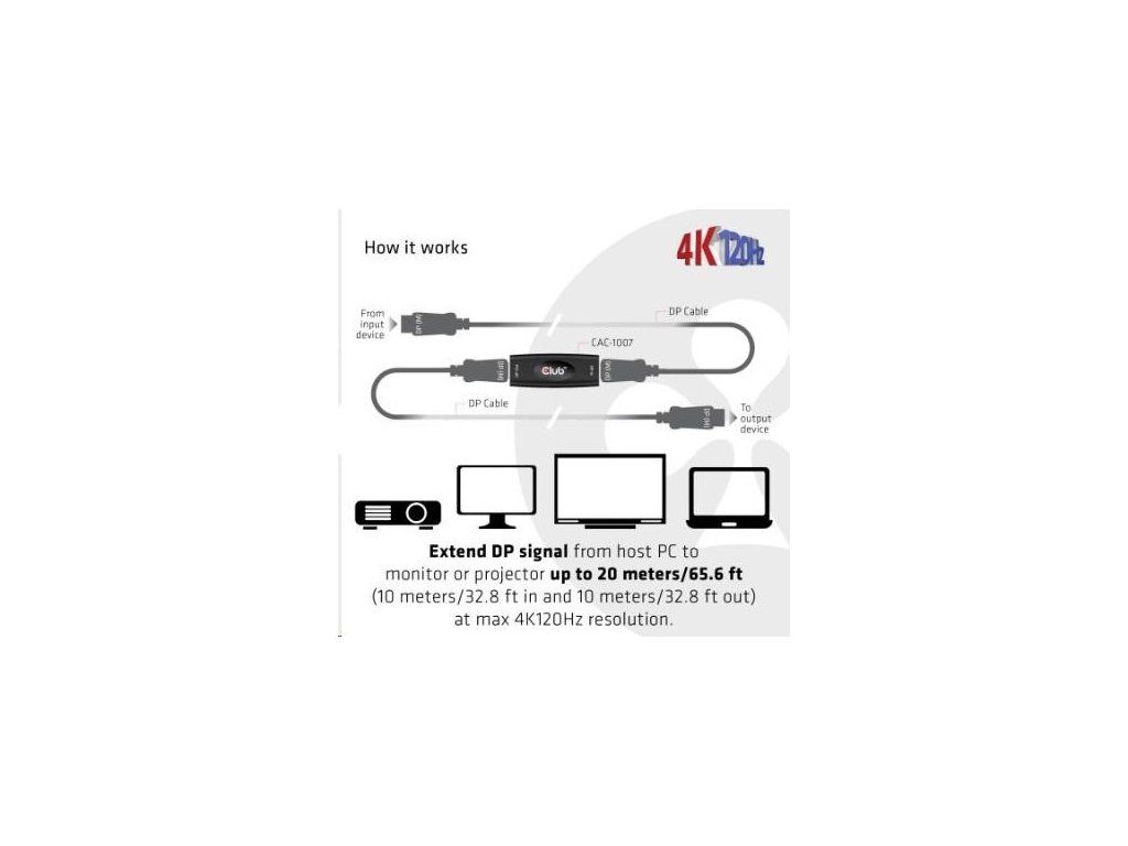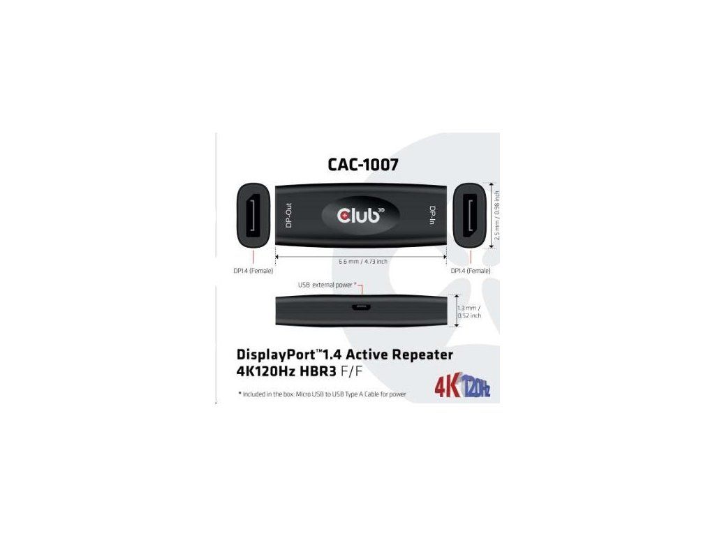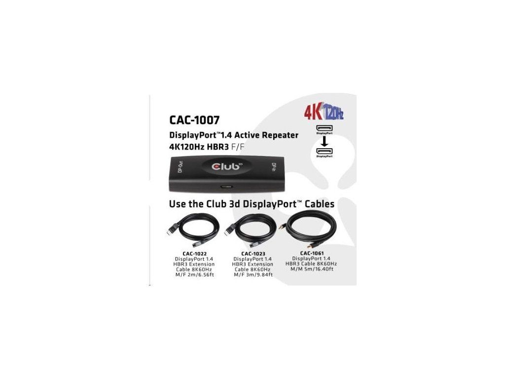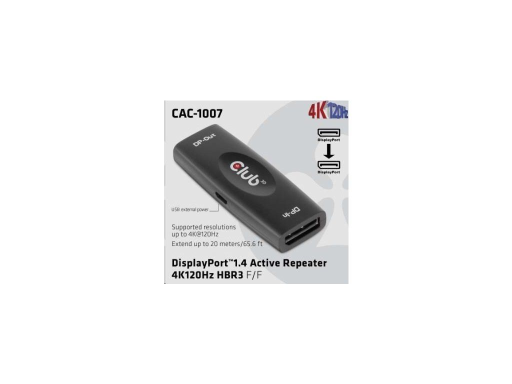 Club3D Adaptér aktivní DisplayPort 1.4 Repeater 4K120HZ HBR3 (F/F), černá