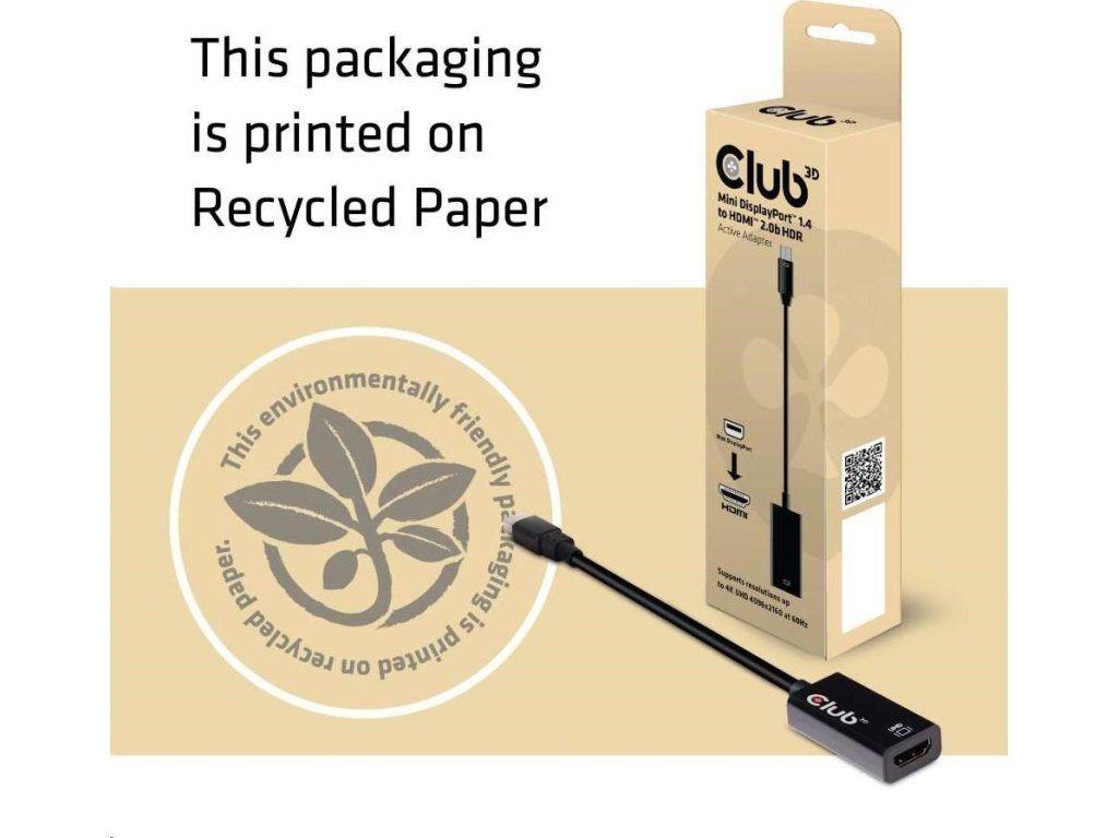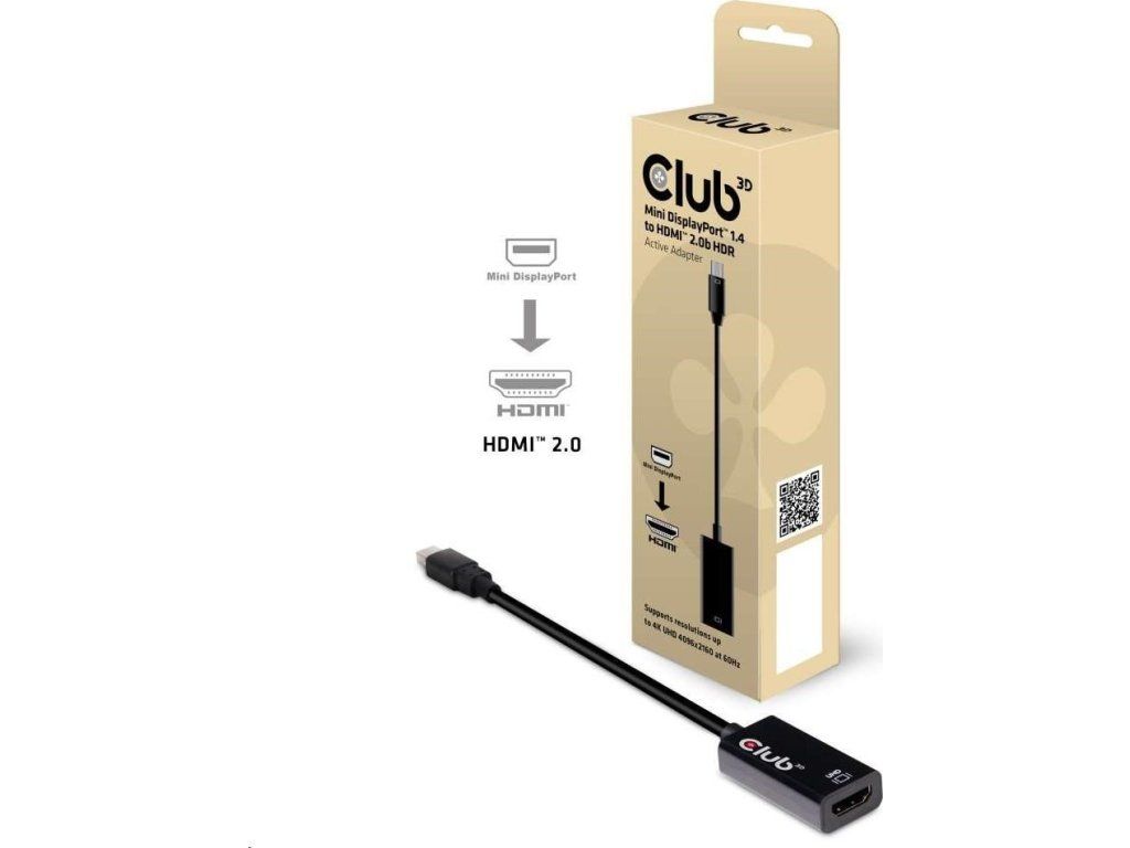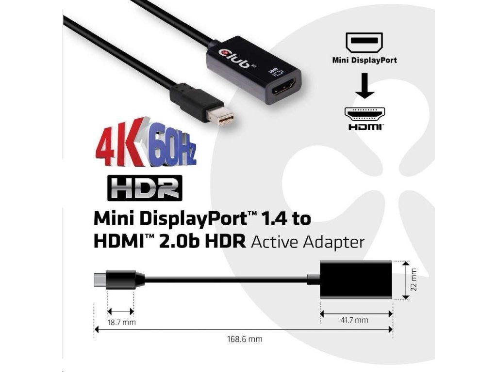 Club-3D MINI DISPLAY PORT 1.4 MALE TO HDMI 2.0a FEMALE 4K 60HZ UHD/ 3D ACTIVE ADAPTER - HDR SUPPORT