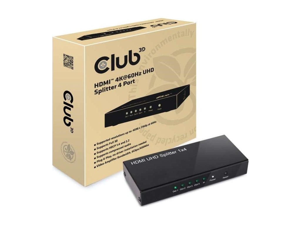 Club3D Rozdeľovač videa 1:4 HDMI 2.0 4K60Hz UHD, 4 porty