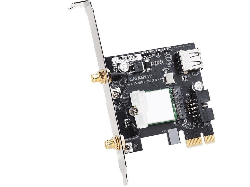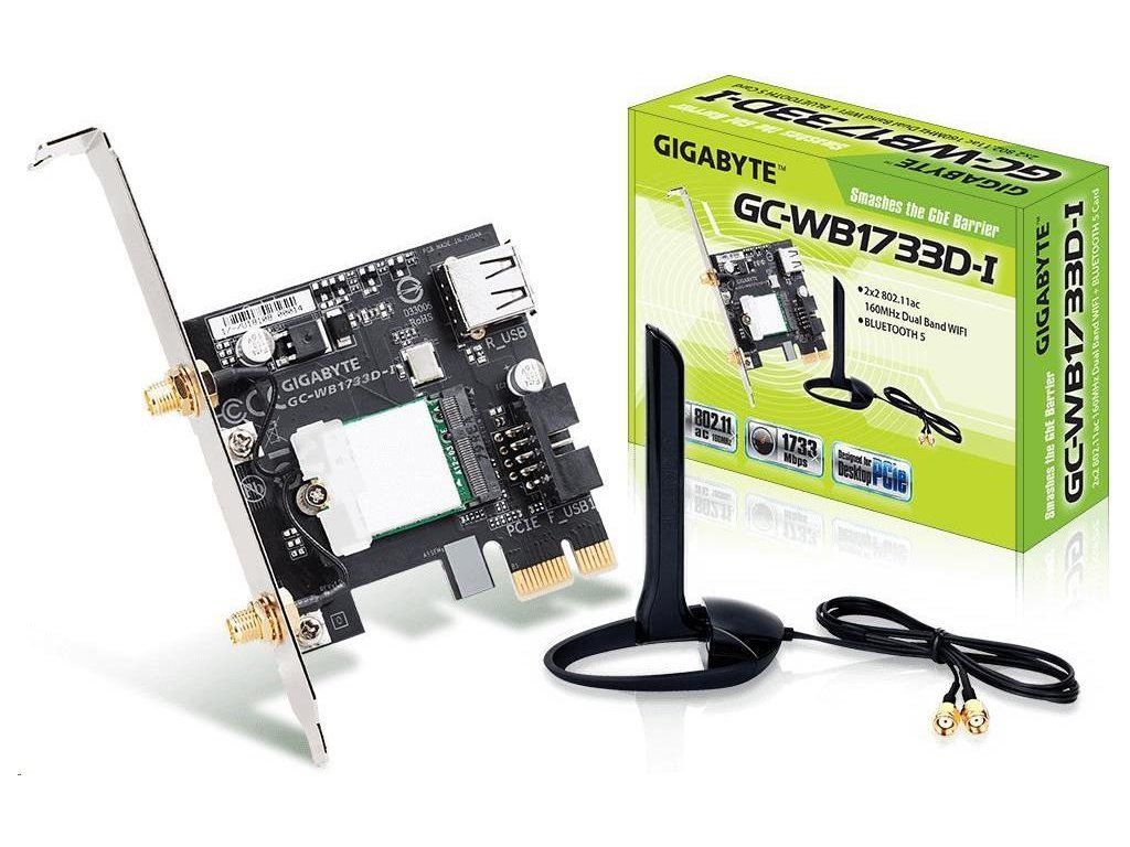 GIGABYTE GC-WB1733D-I, WiFi 802.11ac, Bluetooth 5, PCIe, Dual Band, 1734 Mb/s