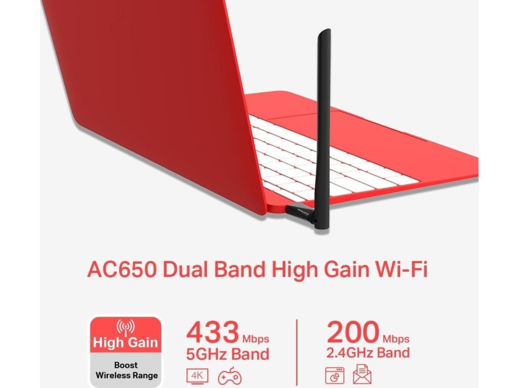 AC650 - bezdrôtový dvojpásmový USB adaptér s vysokým ziskom