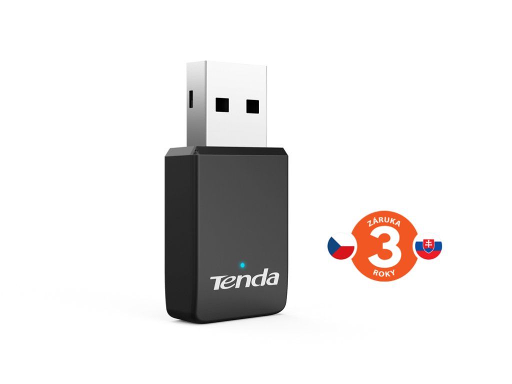 Bezdrôtový USB adaptér Wi-Fi 802.11ac/a/b/g/n s technológiou MU-MIMO, 633 Mb/s (5 GHz 433 Mb/s + 2,4 GHz 200 Mb/s). Zabezpečenie 64/128-bitový WEP, WPA-PSK/WPA2-PSK, WPA/WPA2. Pásma 2,4 a 5 GHz. Interná anténa PIFA. Windows XP/7/8/8.1/10. Automatická inštalácia. Technické parametre Štandardy Wi-Fi: 802.11ac/a/b/g/n a technológia MU-MIMO Frekvencia: 2,4 a 5 GHz Prenosová rýchlosť: 5GHz 433 Mbps, 2,4GHz 200 Mbps Výstupný výkon: < 20 dBm (EIRP) Zabezpečenie: 64/128-bit WEP, WPA-PSK/WPA2-PSK, WPA/WPA2 Spôsob ovládania: PC, automatická inštalácia Podporované OS: Windows XP/7/8/8.1/10 Rozhranie: USB2.0 Anténa: 1x PIFA dBi, interná Prevádzková teplota: 0° až 40 °C Rozmery (v x š x h): 36,8 x 18,5 x 7,6 mm Hmotnosť: 9 g Popis produktu Bezdrôtový Wi-Fi USB adaptér Tenda U9 od spoločnosti Tenda Technologies podporuje štandard 802.11ac/a/b/g/n v pásmach 2,4 a 5 GHz, ktoré umožňujú komunikáciu rýchlosťou až 633 Mb/s (5 GHz 433 Mb/s, 2,4 GHz 200 Mb/s). Vďaka vysokej prenosovej rýchlosti je vhodný na streamovanie videí v rozlíšení HD a FullHD a prenos väčších objemov dát. Tenda U9 je vhodná pre malé firmy aj domácnosti pre stolové počítače aj notebooky. Tenda U9 sa konfiguruje jednoducho pomocou operačného systému. Samozrejme, podporuje silné 64/128-bitové zabezpečenie WEP, WPA-PSK/WPA2-PSK, WPA/WPA2. Tenda U9 je vybavená technológiou MU-MIMO. MU-MIMO (Multiple User - Multiple Input Multiple Output) sa vyznačuje skrátením času čakania klientskeho zariadenia na signál a tiež času prijímania dát z WiFi routera. Tenda U9 je vybavená internou špeciálnou anténou PIFA..