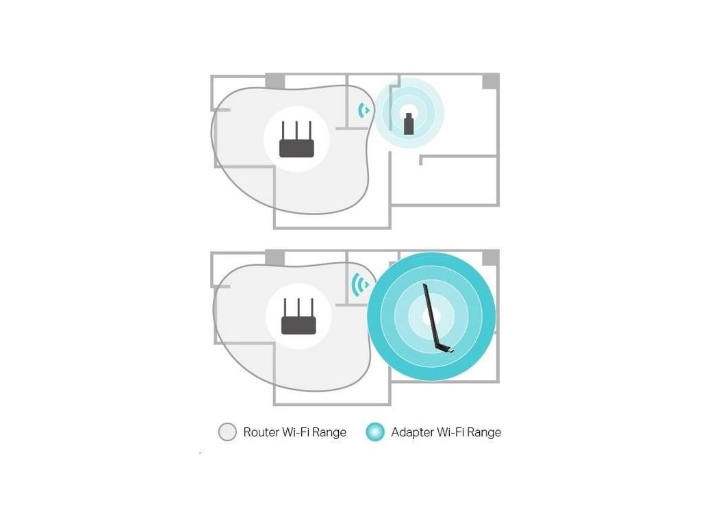 Archer T2U Plus prijíma Wi-Fi signály vo dvoch samostatných pásmach. Podpora 256QAM zvyšuje dátovú rýchlosť v pásme 2,4 GHz zo 150 Mb/s na 200 Mb/s, čo prináša o 33 % rýchlejší výkon. Rýchlosť 200 Mb/s v pásme 2,4 GHz je ideálna na bežné použitie, ako je napríklad surfovanie po webe so staršími zariadeniami. Rýchlosť 433 Mb/s v pásme 5 GHz je ideálna na streaming vo Full HD a hranie hier online bez oneskorenia.