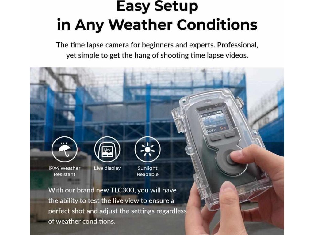 Sada Construction BCC300 je dokonalým riešením pre každého, kto začína s časozbernou fotografiou. Vďaka svojmu ľahko použiteľnému rozhraniu je ideálna pre amatérov, zatiaľ čo vodotesné puzdro a montážne príslušenstvo umožňujú bezstarostné vonkajšie použitie.