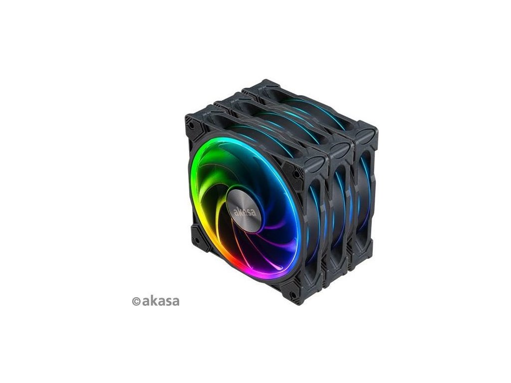 AKASA ventilátor SOHO AR, 12cm ARGB PWM fan 3pcs bundle + FLEXA FP5H AK-CBFA08-30BK + ARGB LED splitter AK-CBLD07-50BK