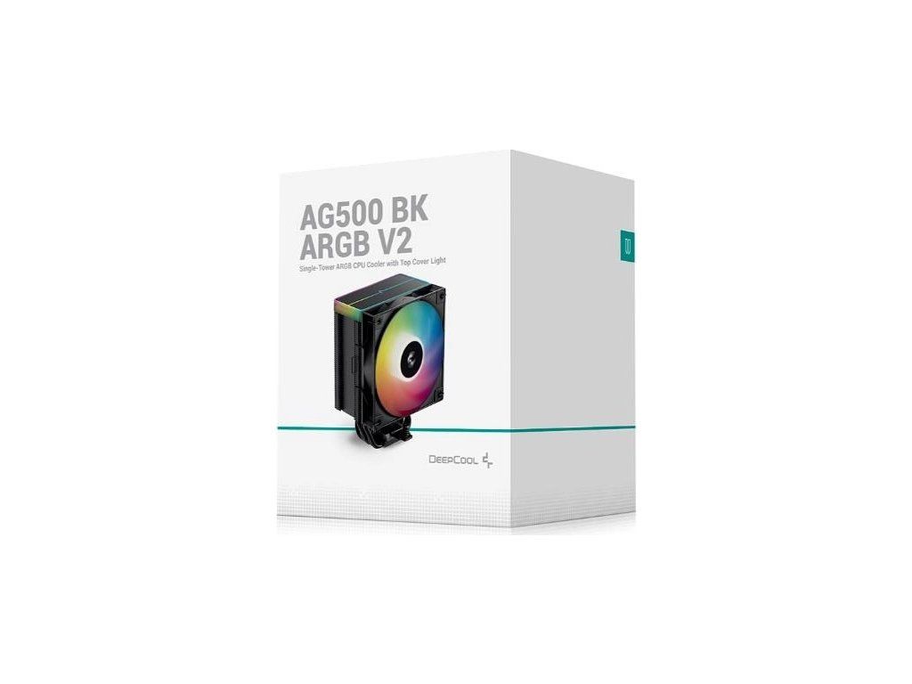 DeepCool AG500 BK ARGB V2 je celokovový jednovrstvový chladič CPU zameraný na vysoký výkon, ktorý sa pýši piatimi teplovodivými rúrami zabalenými v hutnej veži chladiča pre optimálnu odvod tepla a spárovaný s jemne vyladeným 120mm ARGB PWM ventilátorom pre účinné chladenie.