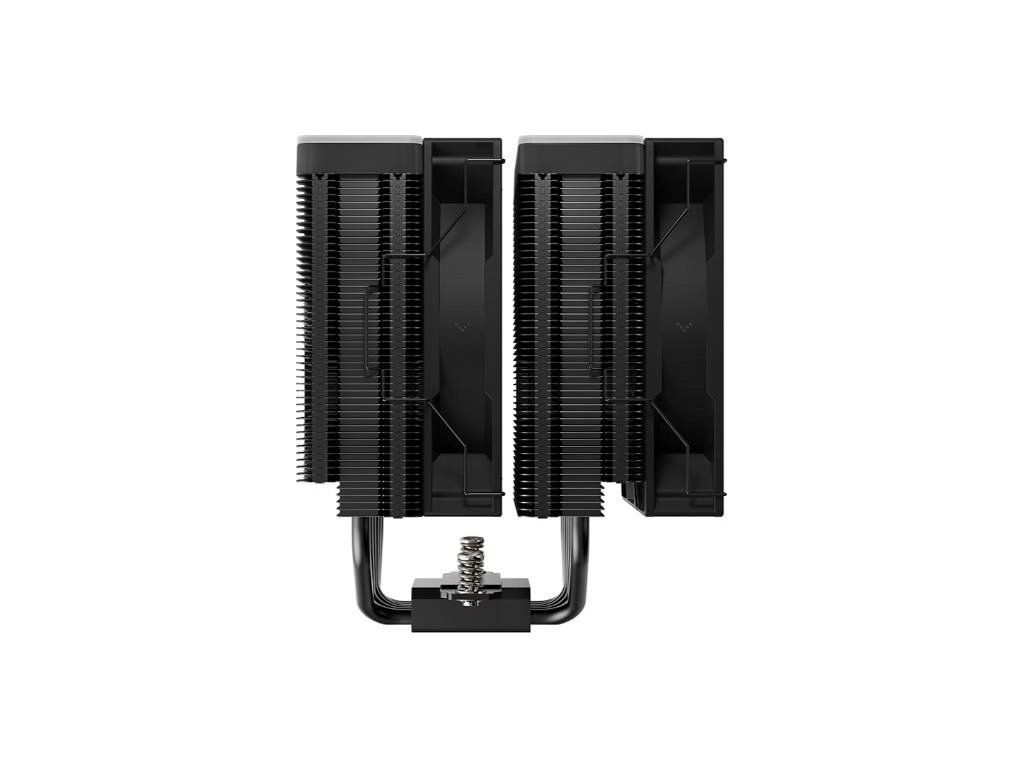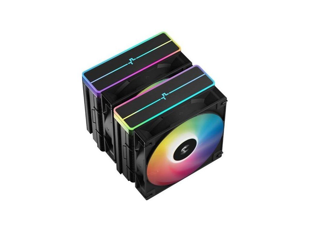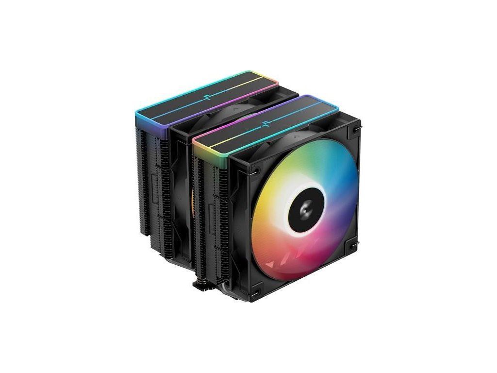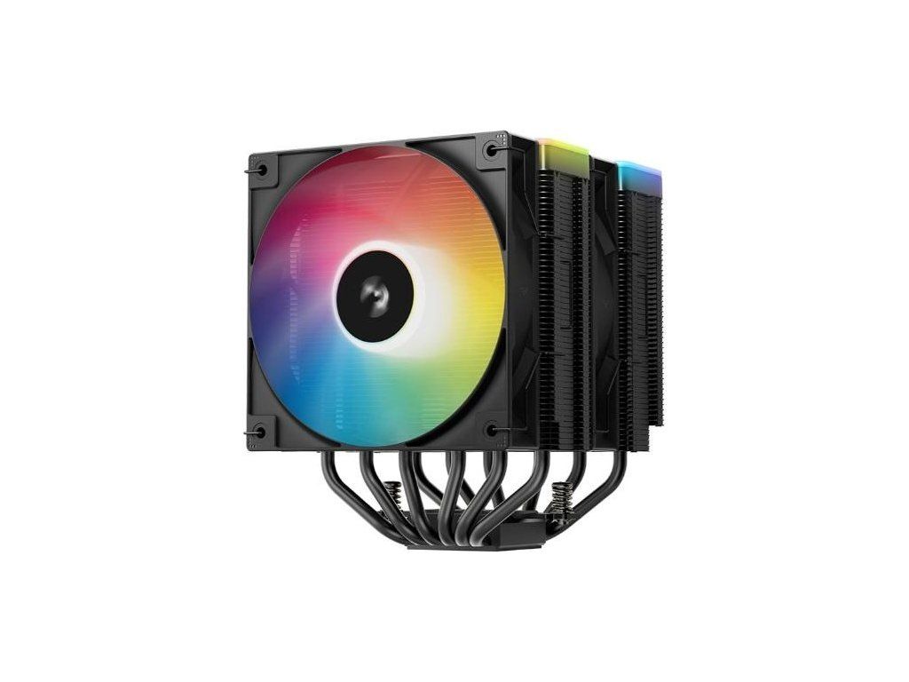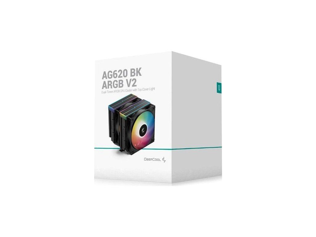 DeepCool AG620 BK ARGB V2 je celý čierny dvojvežový chladič procesora zameraný na vysokú výkonnosť, ktorý sa pýši šiestimi tepelnými trubicami umiestnenými v hustej veži chladiča pre optimálny odvod tepla a je vybavený dvoma ladenými 120mm ventilátormi ARGB PWM pre výkonné chladenie.