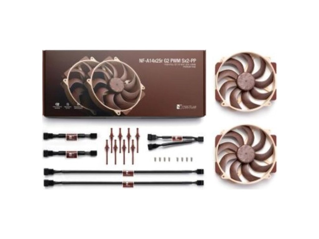 NF-A14x25r G2 PWM Sx2-PP je sada dvoch ventilátorov NF-A14x25r G2 PWM s kruhovým rámom 140 mm na push-pull prevádzku na chladičoch, ako je NH-D15(S) alebo NH-U14S. Keď dva ventilátory pracujú v konfigurácii push-pull a bežia takmer rovnakou, konštantnou rýchlosťou, ich akustická interakcia môže viesť k nežiaducim harmonickým javom, ako sú prerušované vibrácie alebo periodické hučanie v dôsledku rušenia, ktoré možno počuť ako tepové frekvencie.