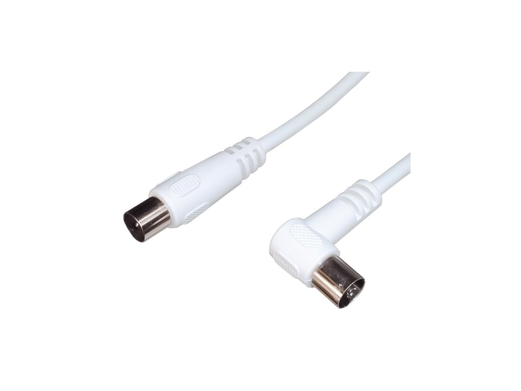 TV kábel M/F 75 Ohm, zahnutý konektor - konektory IEC samec-samica - kvalitné tienenie - 90 stupňov zahnutý konektor - dĺžka 2 m.