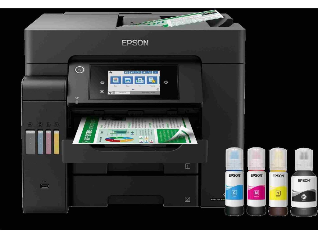 S touto ľahko použiteľnou tlačiarňou EcoTank môžete tlačiť, skenovať, kopírovať a faxovať dokumenty za skutočne výnimočne nízke náklady na stránku. Všetky úlohy zvládnete rýchlo vďaka rýchlej tlači a skenovaniu, dvom predným zásobníkom na 250 listov, zadnému podávaču na 50 listov a automatickému podávaču dokumentov na 50 listov. Vďaka funkciám mobilnej tlače, pripojeniu k sieti Ethernet a 10,9 cm dotykovému displeju LCD môžete tlačiť tak, ako potrebujete.
