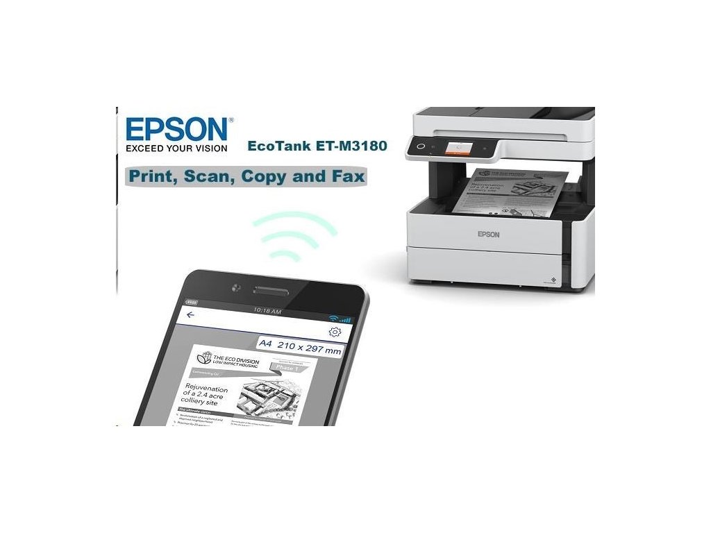 Atramentová tlačiareň EPSON EcoTank Mono M3180, 4v1, A4, 39 str./min, Ethernet, Wi-Fi (Direct), duplex, LCD, ADF, Trade In 1000 Kč