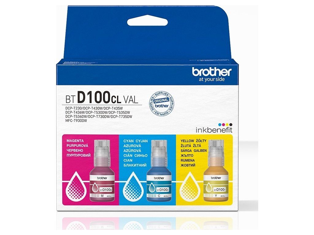 BROTHER INK BT-D100CLVAL Value pack pro T23x, T43x, T53x, T73x, T93x cca 5000 stránek - sada CMY- INKTANK