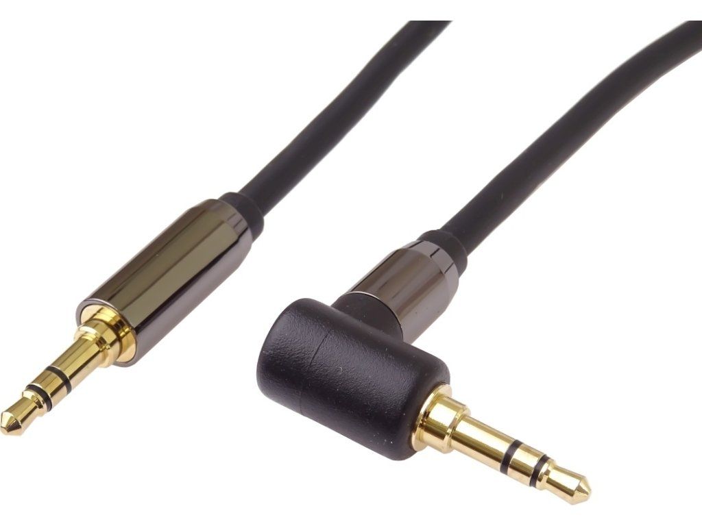 PremiumCord HQ stínený kábel stereo Jack 3,5 mm - Jack 3,5 mm zahnutý 90° 3m