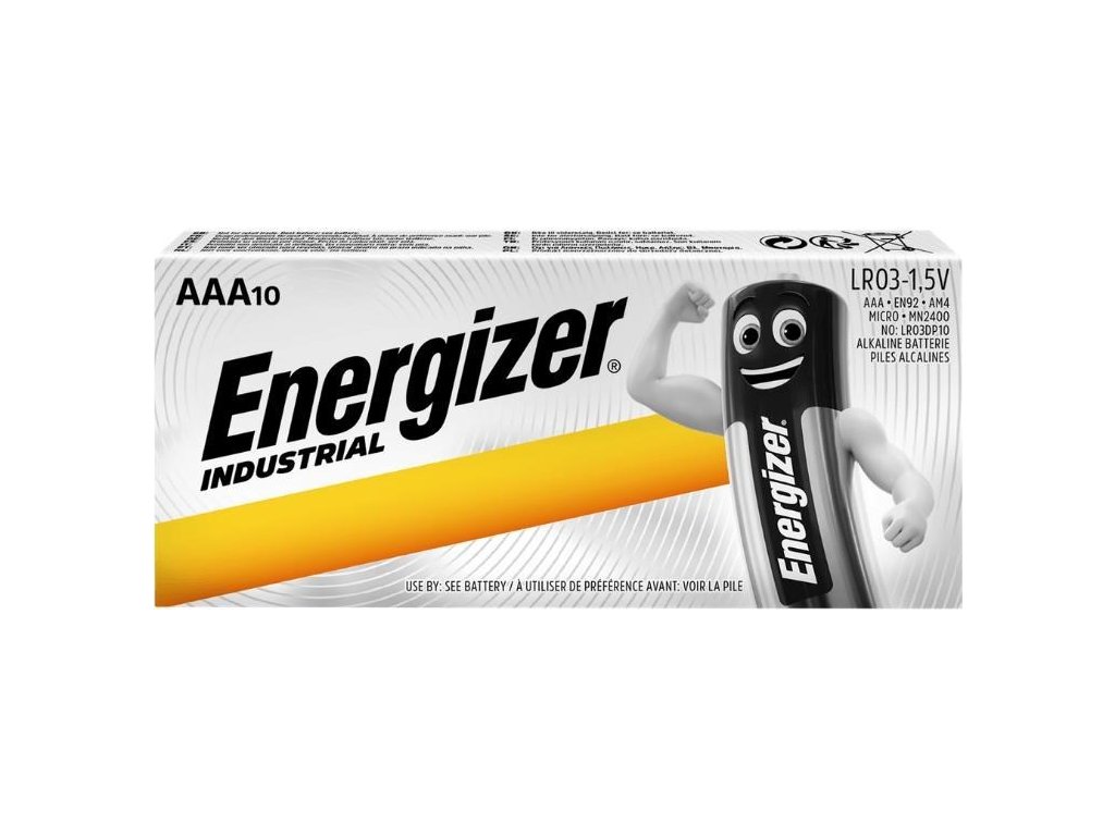 - Baterie Energizer Industrial AAA sú v ekonomicky výhodnom balení v papierových krabiciach po 10 kusov
