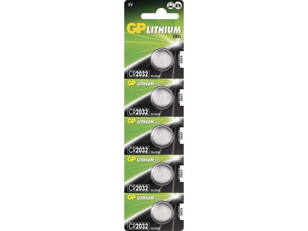 Balení kvalitních lithiových baterií značky GP. Baterie je typu CR2032 a je obvykle určena pro napájení základních obvodů v běžných základních deskách, do dálkových ovladačů a dalších miniaturních zařízení. Poskytuje napájení s napětím 3 V a její kapacita je 210 mAh. Dodává se v blistru po 5 kusech.