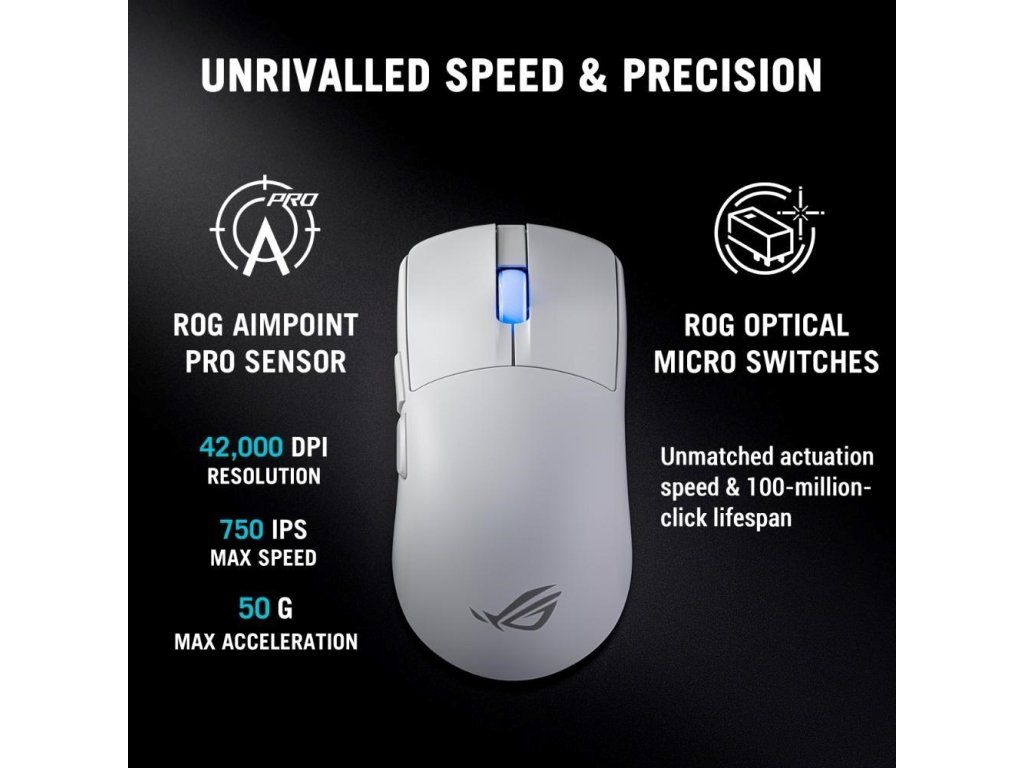 ASUS Herní myš ROG Harpe II Ace, Bezdrátová, bílá