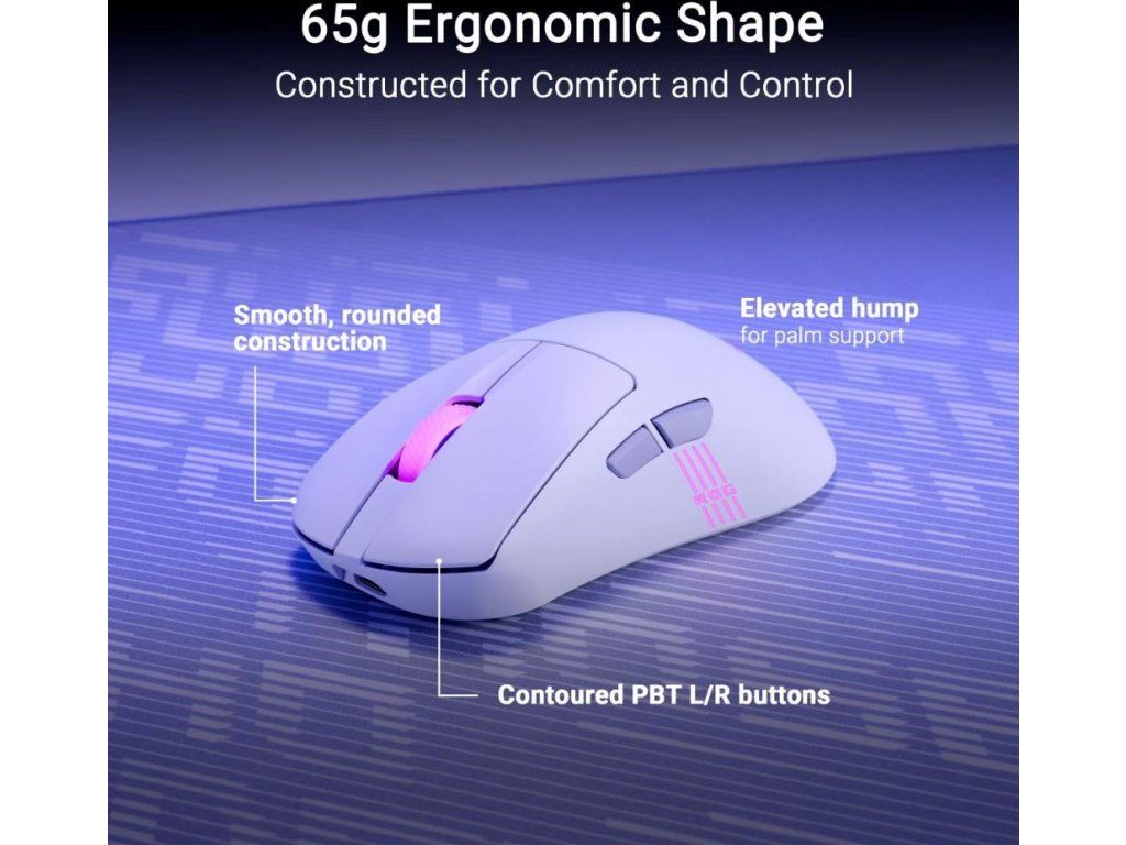 - Ergonomický dizajn o hmotnosti 65 gramov: Overený tvar vytvorený tak, aby vyhovoval väčšine štýlov úchopu