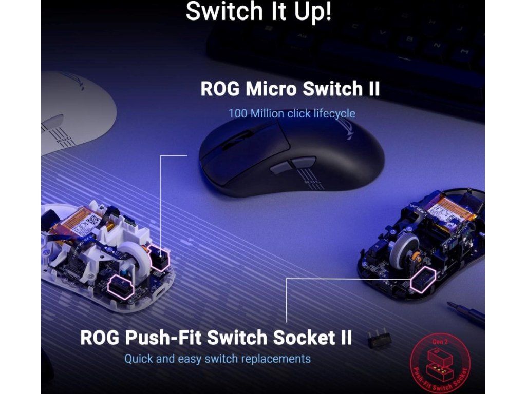 - ROG Micro Switch II: Jasné kliknutia s výnimočnou životnosťou 100 miliónov kliknutí