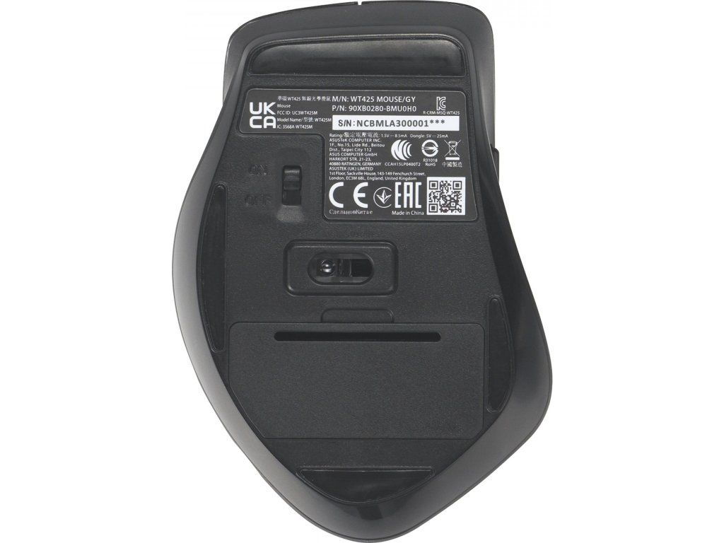 ASUS WT425/Ergonomická/Optická/Pro praváky/1 600 DPI/Bezdrátové USB/Šedá