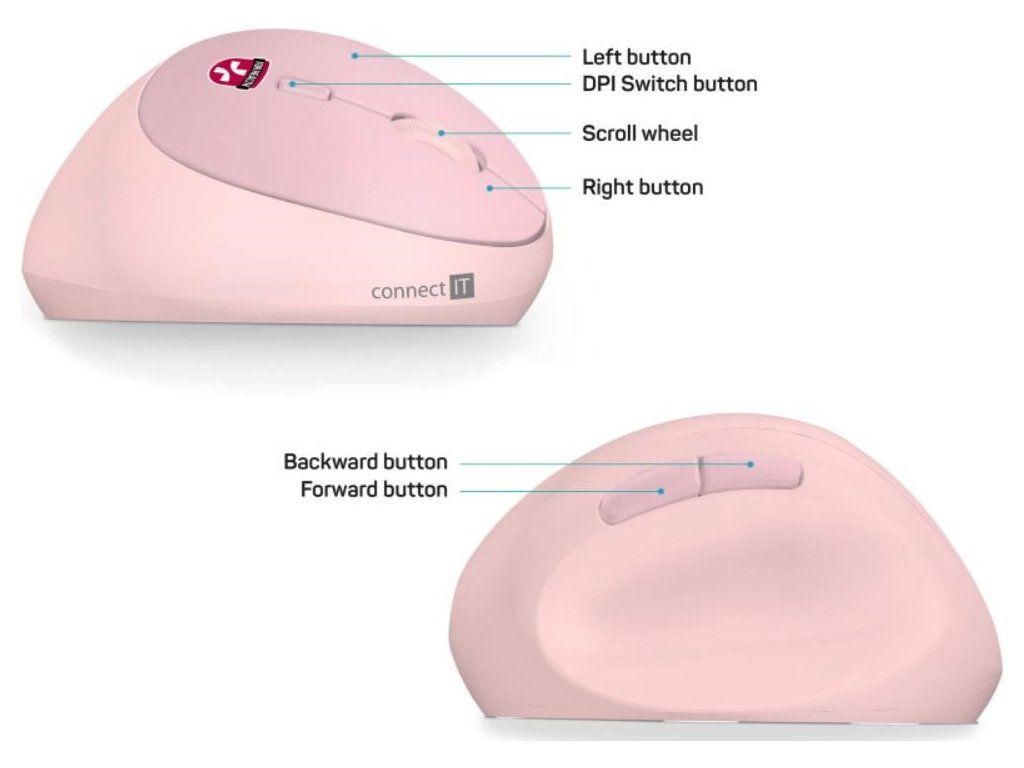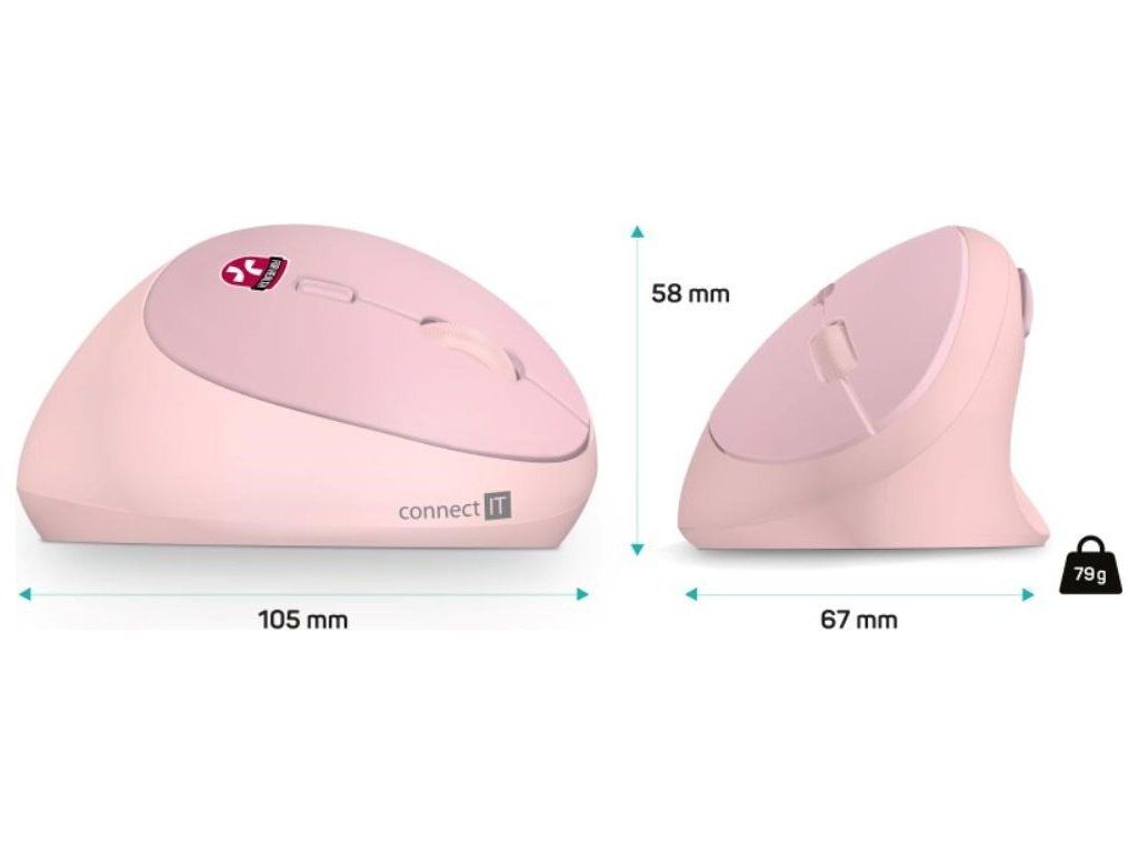 CONNECT IT FOR HEALTH LADIES PINK Bezdrátová vertikální myš, ergonomická, růžová
