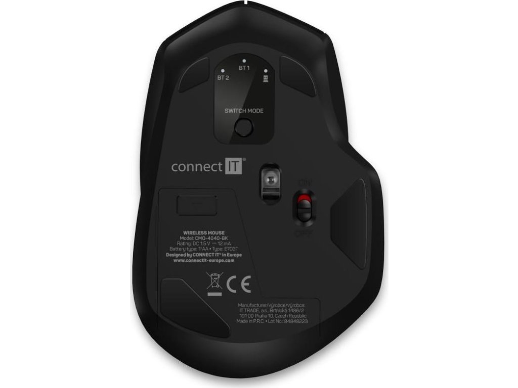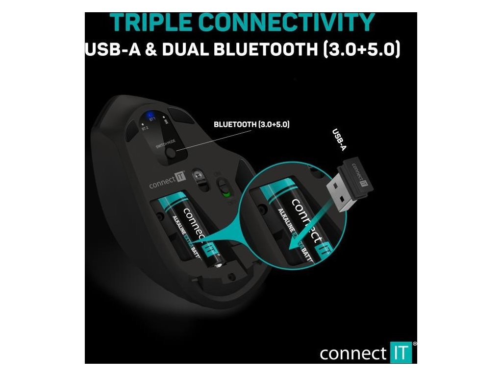 CONNECT IT Trojitá bezdrôtová myš SmartSwitch, 2.4 GHz a Bluetooth 5.0, čierna
