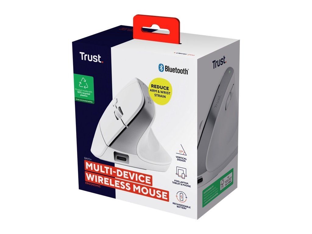 TRUST myš Bayo+ Ergonomická vertikální myš, Bezdrátová, bílá
