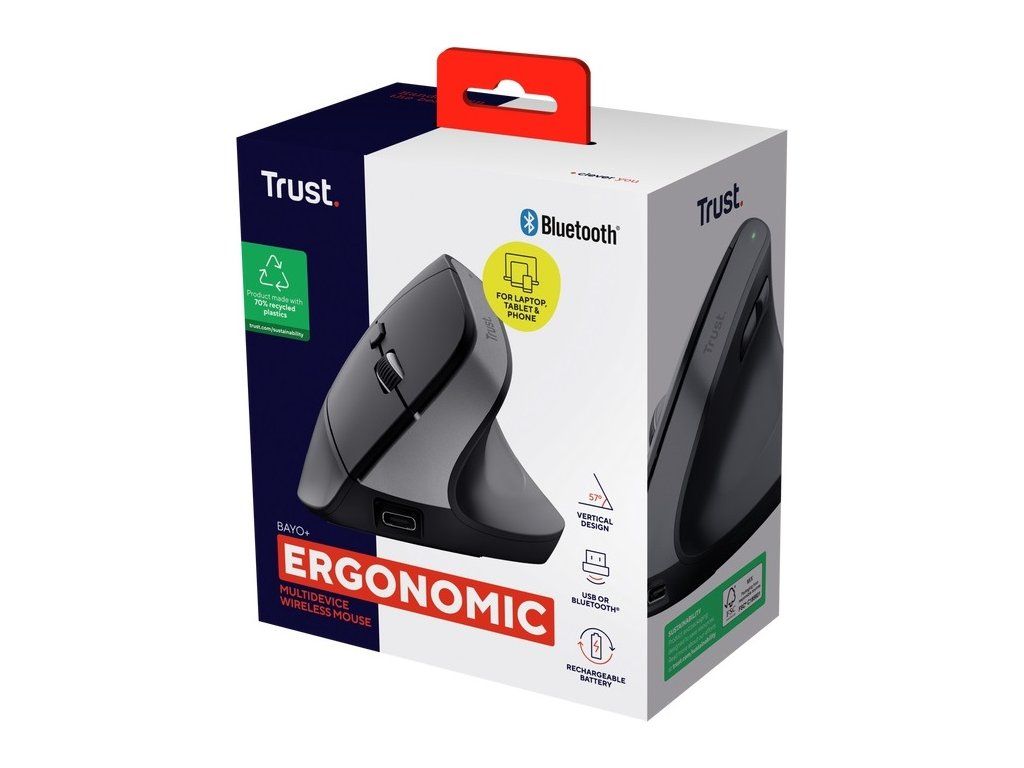 TRUST myš Bayo+ Ergonomická vertikální myš, Bezdrátová, černá