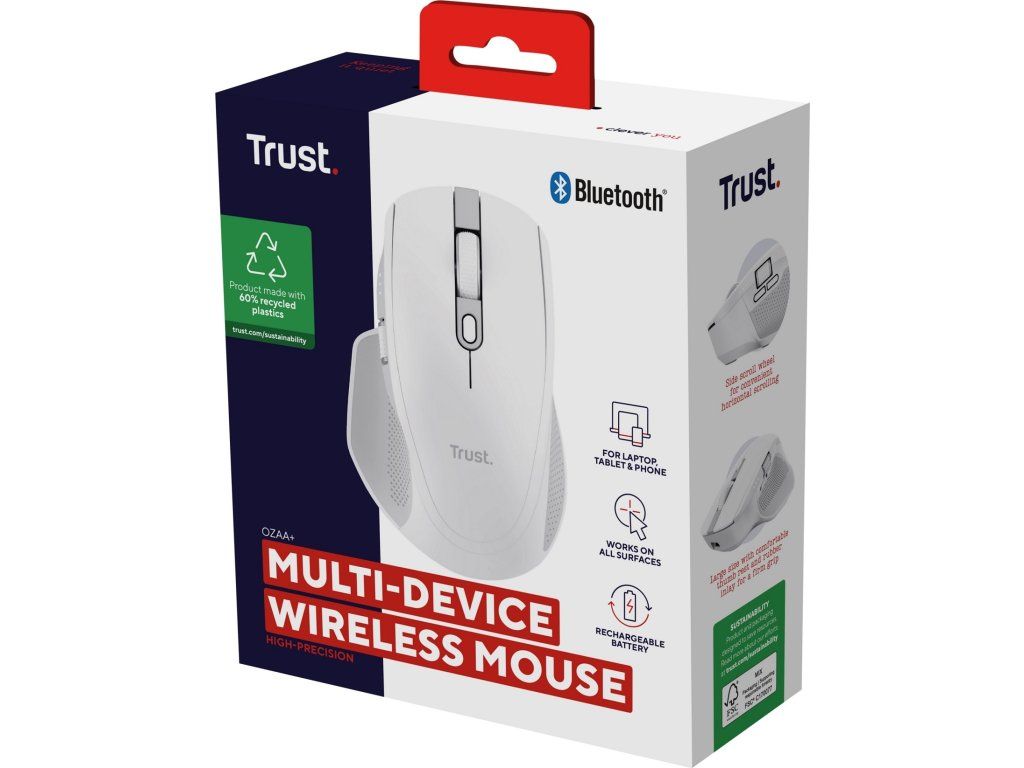 TRUST Myš OZAA+, Bezdrátová, bílá
